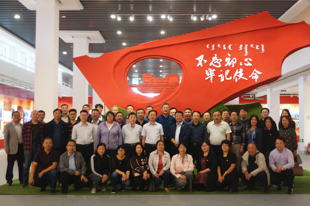 在舉國上下歡慶新中國成立70周年之際,9月25日下午,學(xué)院黨委組織了“不忘初心、牢記使命”主題教育處級干部現(xiàn)場教育。孫智憑書記帶領(lǐng)全院副處級以上干部50余人前往內(nèi)蒙古展覽館,參觀自治區(qū)“不忘初心、牢記使命”主題教育系列展:“黨的光輝照北疆——內(nèi)蒙古老宣傳畫老照片文獻史料展”與“內(nèi)蒙古民族新文化從這里起步——內(nèi)蒙古文工團回顧展”。