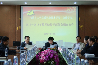 校黨委組織部部長蘇振榮宣讀學校黨委關于交通學院處級干部的任命和聘免決定。交通學院領導班子成員、新任職的處級干部和全院副高級職稱教師、副科級以上干部參加了會議。