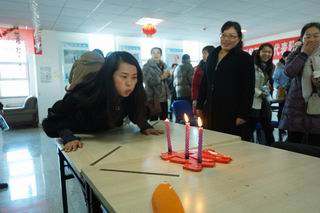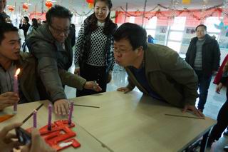 活動現(xiàn)場張燈結(jié)彩,一片歡聲笑語。金鉤釣魚、好運(yùn)飛鏢、幸福圈套、隔桌吹蠟、快樂乒乓夾、蒙眼摸鼻等六個貼近生活、充滿趣味的游藝項(xiàng)目,給廣大教職工奉獻(xiàn)了一頓豐富多彩的娛樂大餐。游藝中,有比技巧的,有比準(zhǔn)勁的,有比運(yùn)氣的……大家個個勁頭十足,一改往日的嚴(yán)謹(jǐn),沉醉在游戲帶來的樂趣之中,盡情釋放著平日工作的壓力,盡情享受著游戲活動帶來的快樂,一年以來教書育人的辛勞在這一刻全部隨著2015年蕩滌而去,新一年熱火朝天的干勁油然而生。
